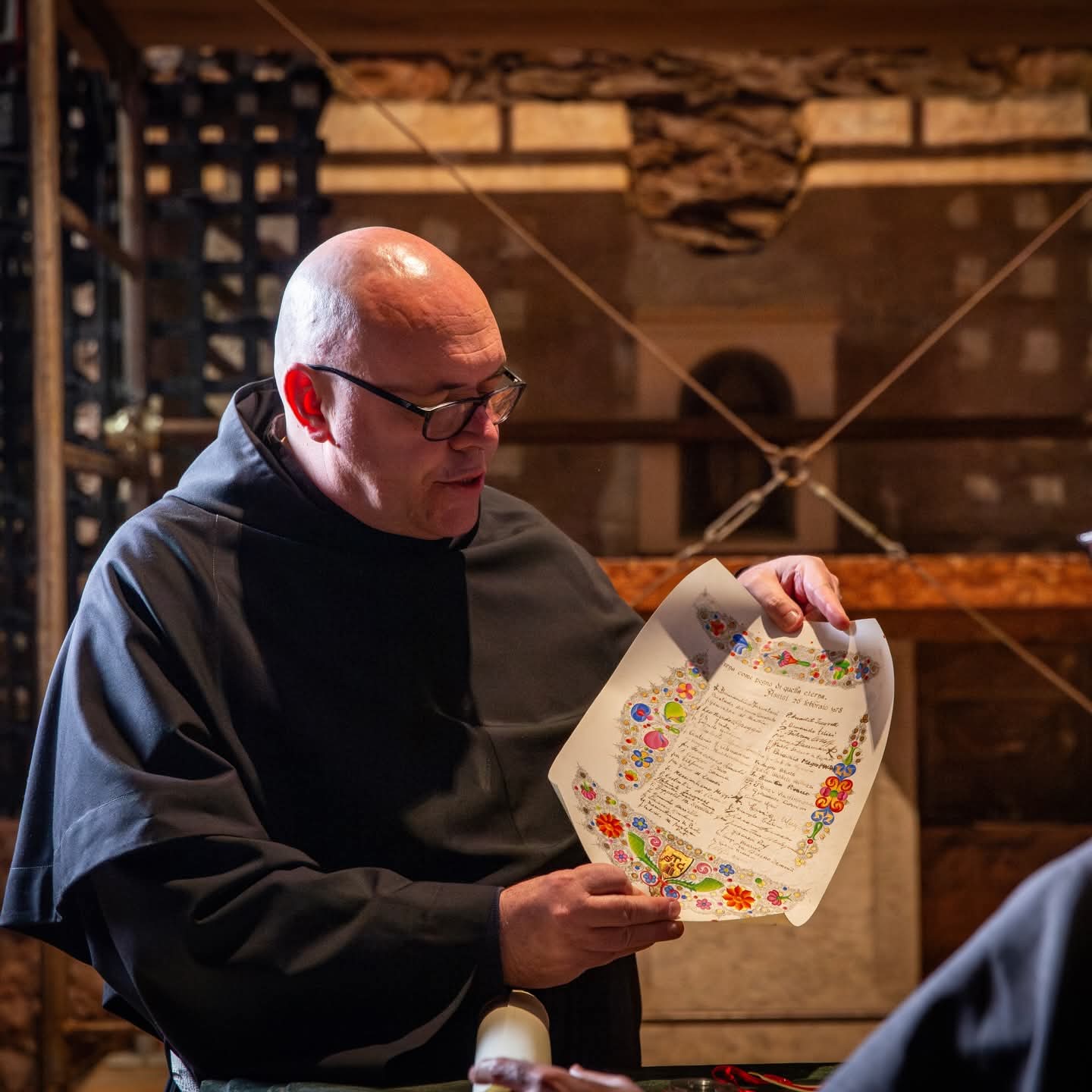 Istoga dana u podne, u dvorani Cimabue konferencijskog centra Colle del Paradiso, održana je službena prezentacija izložbe pred predstavnicima crkvenih i civilnih vlasti. Izložbeni projekt pripremljen je 2023. godine, a realiziran je uz potporu crkvenih institucija i u okviru jubilarne godine posvećene 800. obljetnici Franjine smrti.