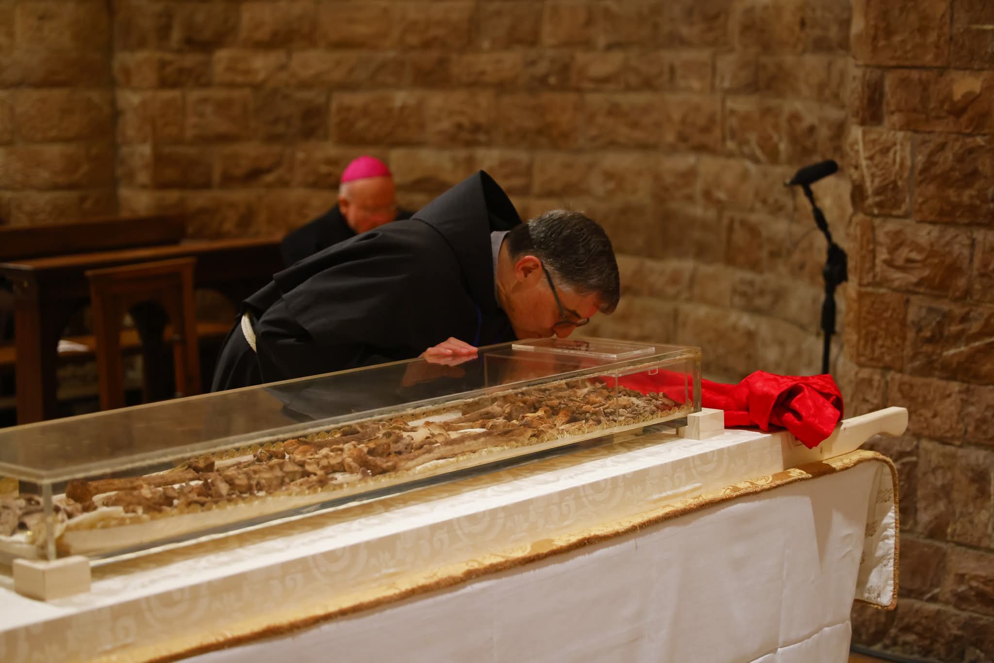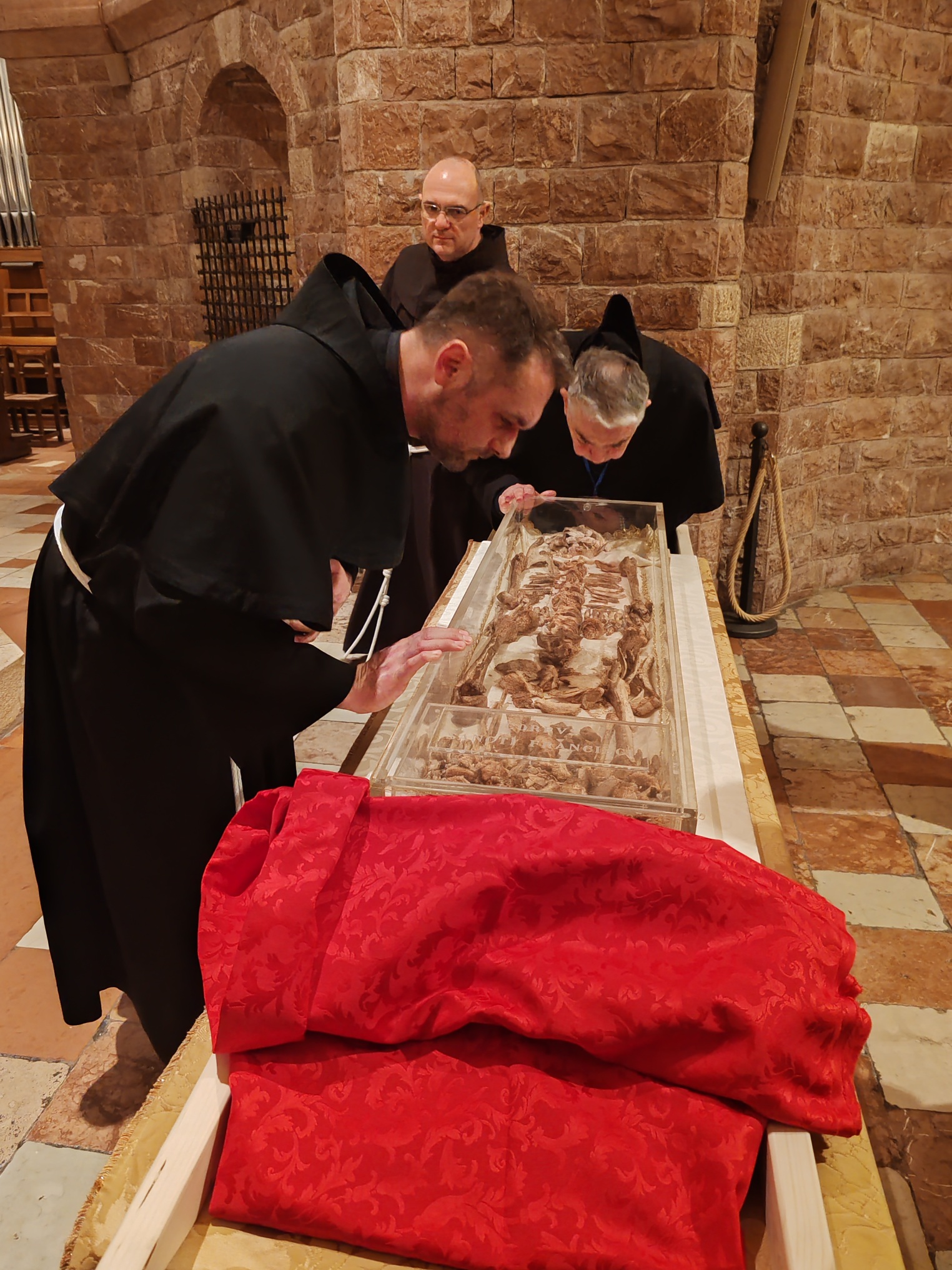 Toga je jutra otvoren sarkofag u kripti bazilike u prisutnosti zajednice Svetog Samostana franjevaca konventualaca te izložen braći na štovanje.